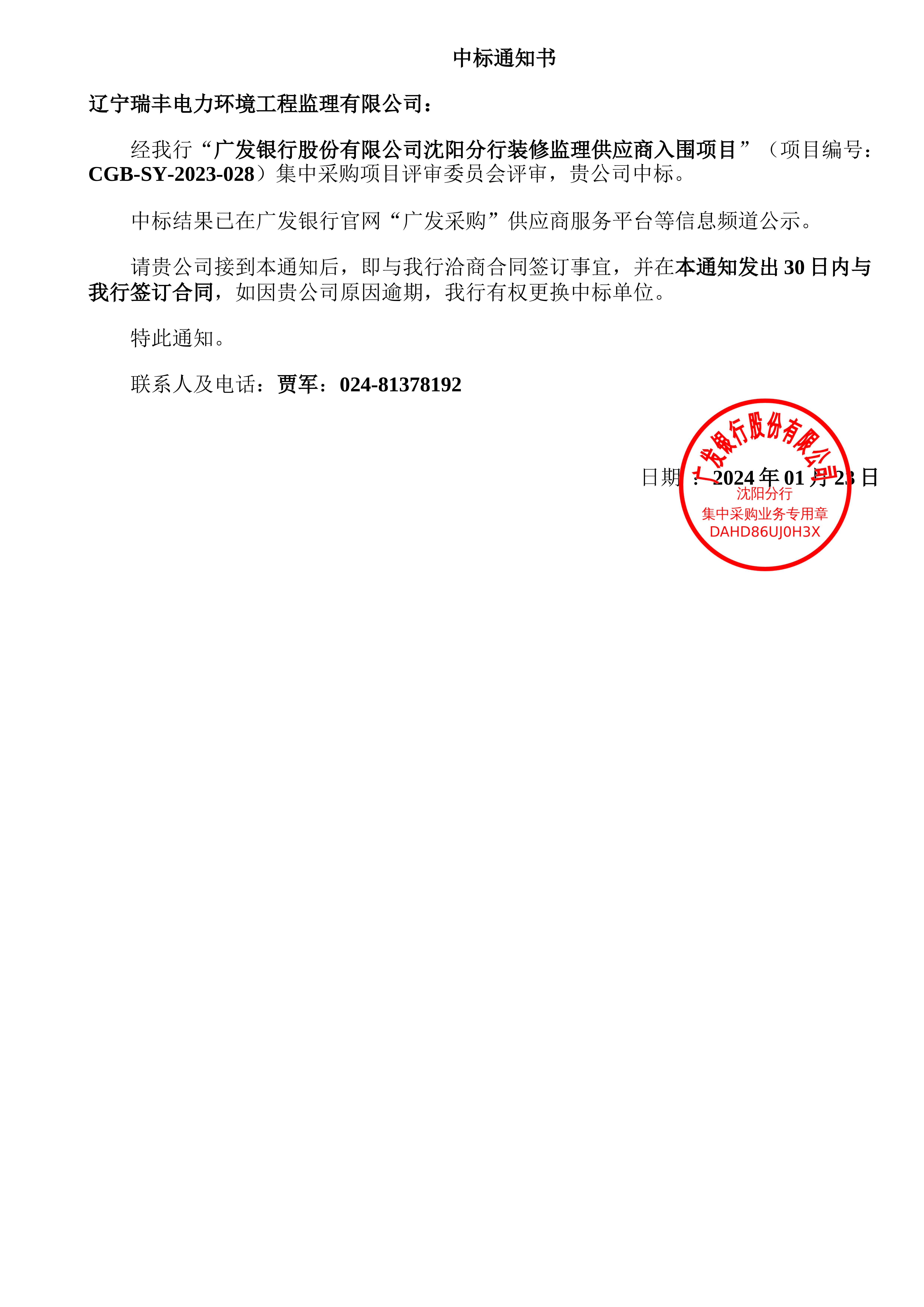 中標喜訊-廣發(fā)銀行股份有限公司沈陽分行裝修監(jiān)理供應(yīng)商入圍項目