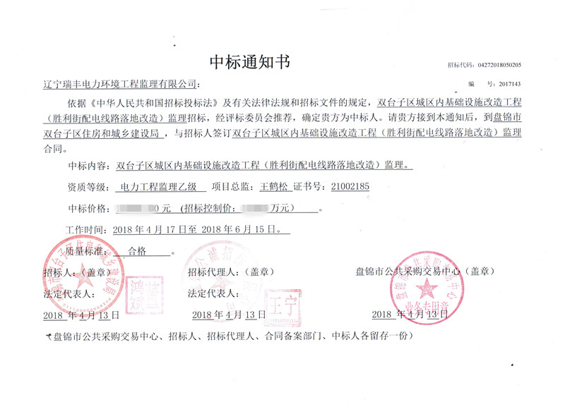 中標喜訊-雙臺子區(qū)城區(qū)內(nèi)基礎(chǔ)設(shè)施改造工程(勝利街配電線路落地改造)監(jiān)理